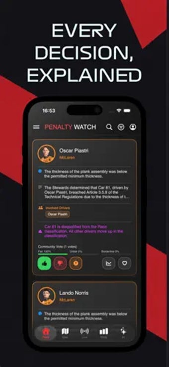 Embora incrivelmente detalhado, sua interface carregada de dados pode parecer opressiva para espectadores casuais que simplesmente querem destaques rápidos. O sistema Fan Verdict permite que os usuários votem em decisões controversas, adicionando uma camada social a debates acalorados. Favoritos facilitam a revisão de incidentes, transformando o aplicativo em uma segunda tela confiável durante os finais de semana de corrida.